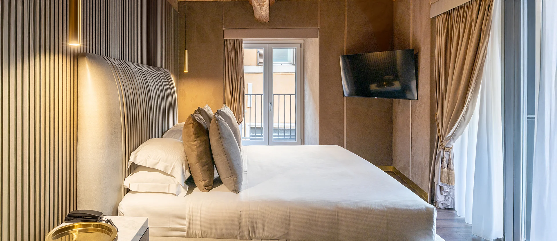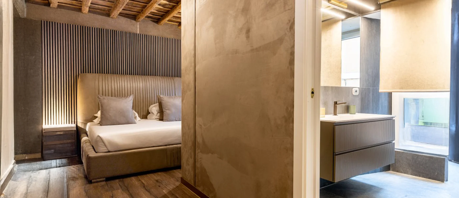 L'arredo e lo stile creano un'atmosfera chic e confortevole, espressione di una costante attenzione ai dettagli. All'occorrenza due Studio Suite possono espandersi unendosi in un'unica grande suite da condividere con la famiglia o con gli amici. A Roma come a casa.